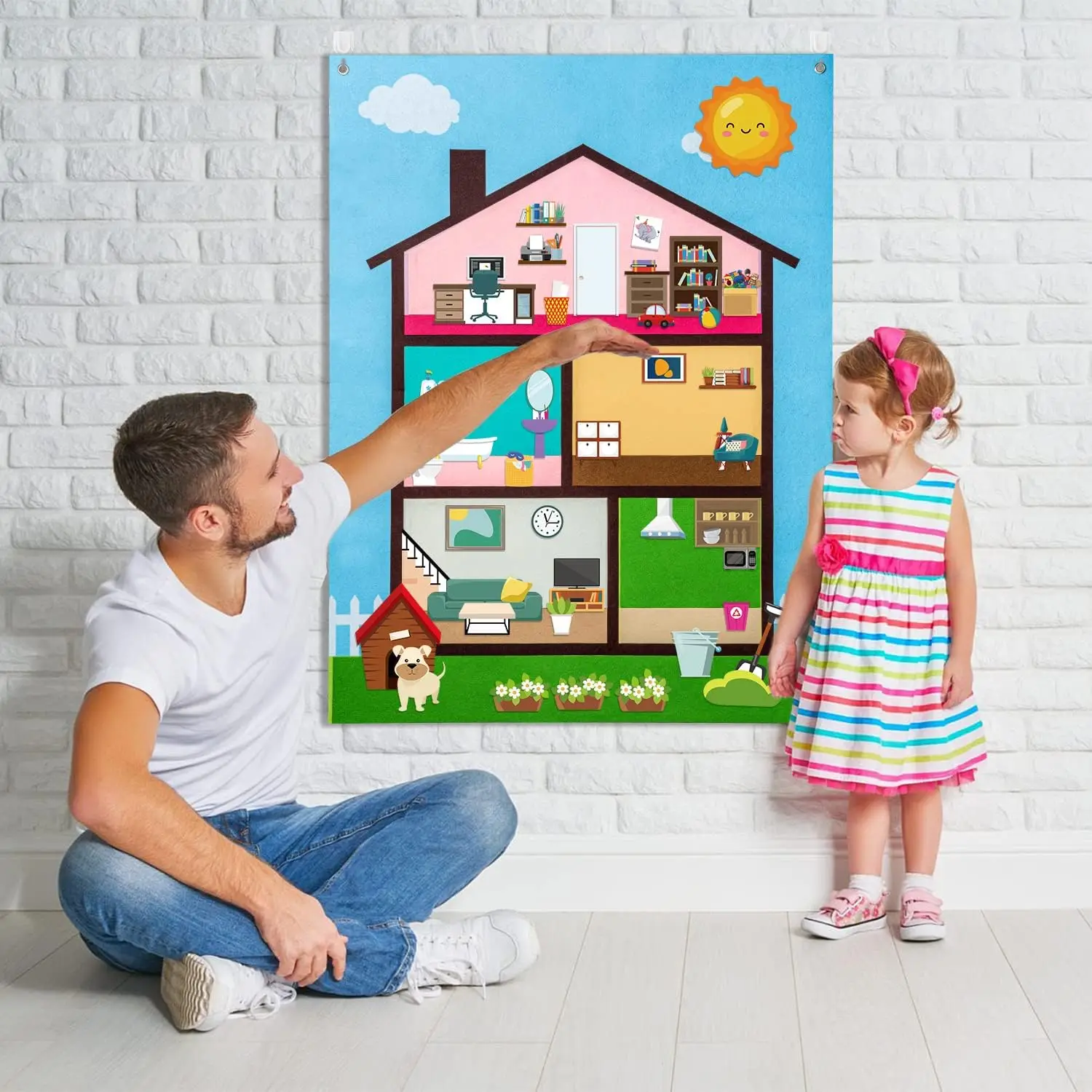 Grand ensemble de panneaux en feutre pelucheux : un ensemble de jouets d’histoire en feutre pour grands animaux de 4,9 pieds de long avec 58 morceaux de feutre qui peuvent être déplacés à plusieurs reprises sur le panneau en feutre.Connecté avec 3 crochets robustes, il est facile d’accrocher le grand panneau de fond en feutre.S’ils sont fonctionnés correctement, ces feutres peuvent être réutilisés pendant une longue période.