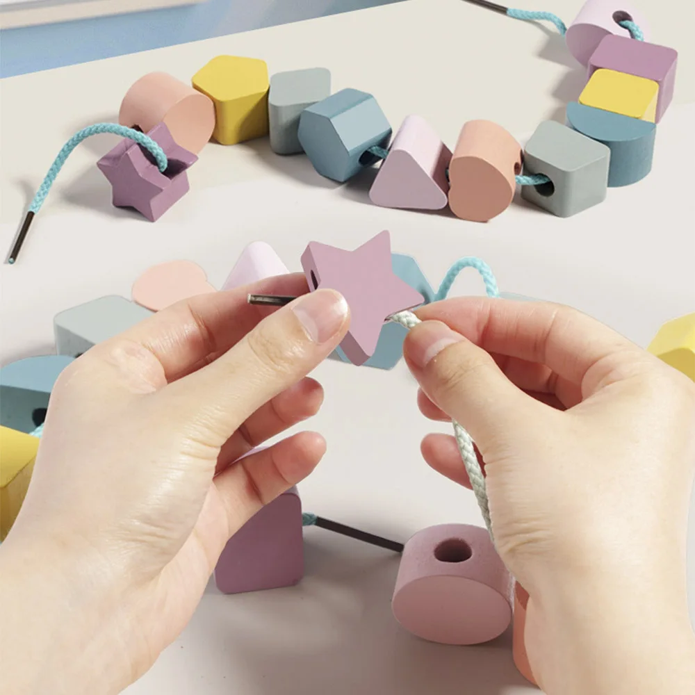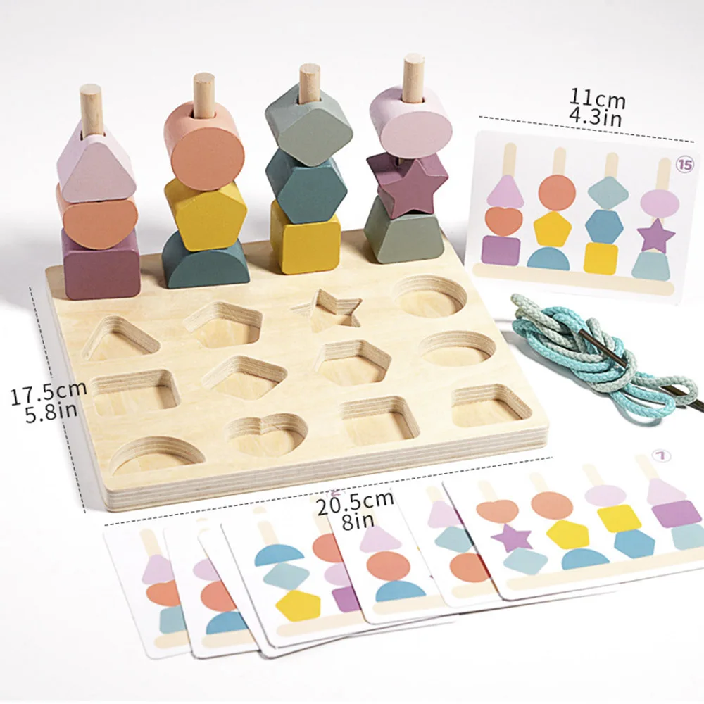 Kids Montessori Wooden Toys Color Shape Matching Puzzle Game Colorful Beaded Color Cognition Educational Toys Gift For Children