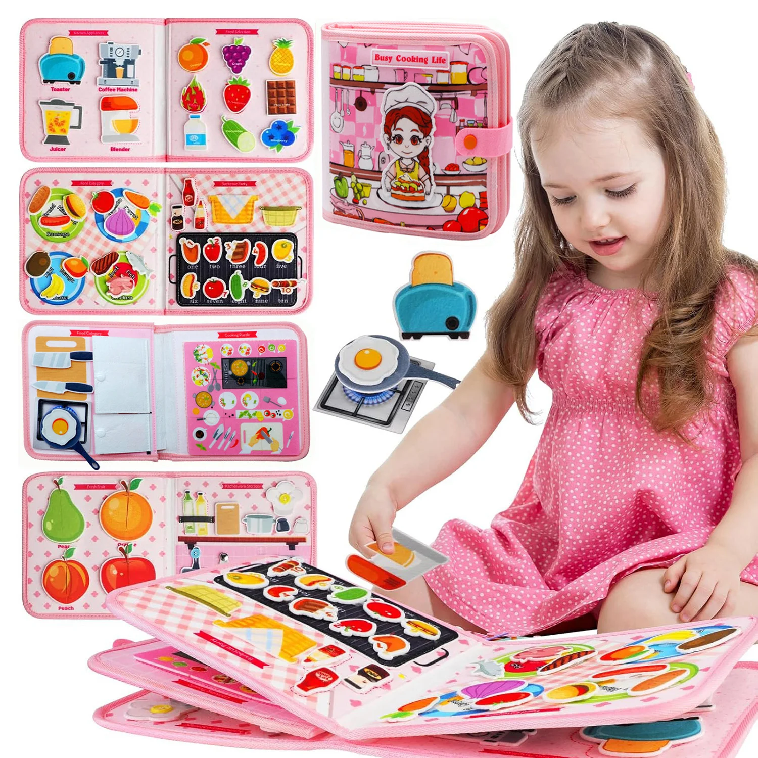 【Good Toy for Children to Play Independently】Our baby has gone from crawling to walking independently what we most hope is that the child can play independently so that we can enjoy our own private space. At this time, what we need to do is to give children the most suitable toys. Cloth book is a good choice. Each scene of busy books is brightly colored, which can attract children »s attention. A variety of scenes and touch-and-feel textures are perfect for toddlers give endless hours of fun!