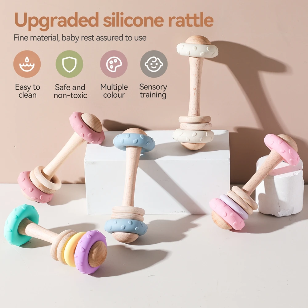 Le bébé peut mordiller le hochet bébé en bois et silicone en toute sécurité, ce qui l’aide à apaiser l’inconfort dentaire tout en développant ses réflexes naturels.