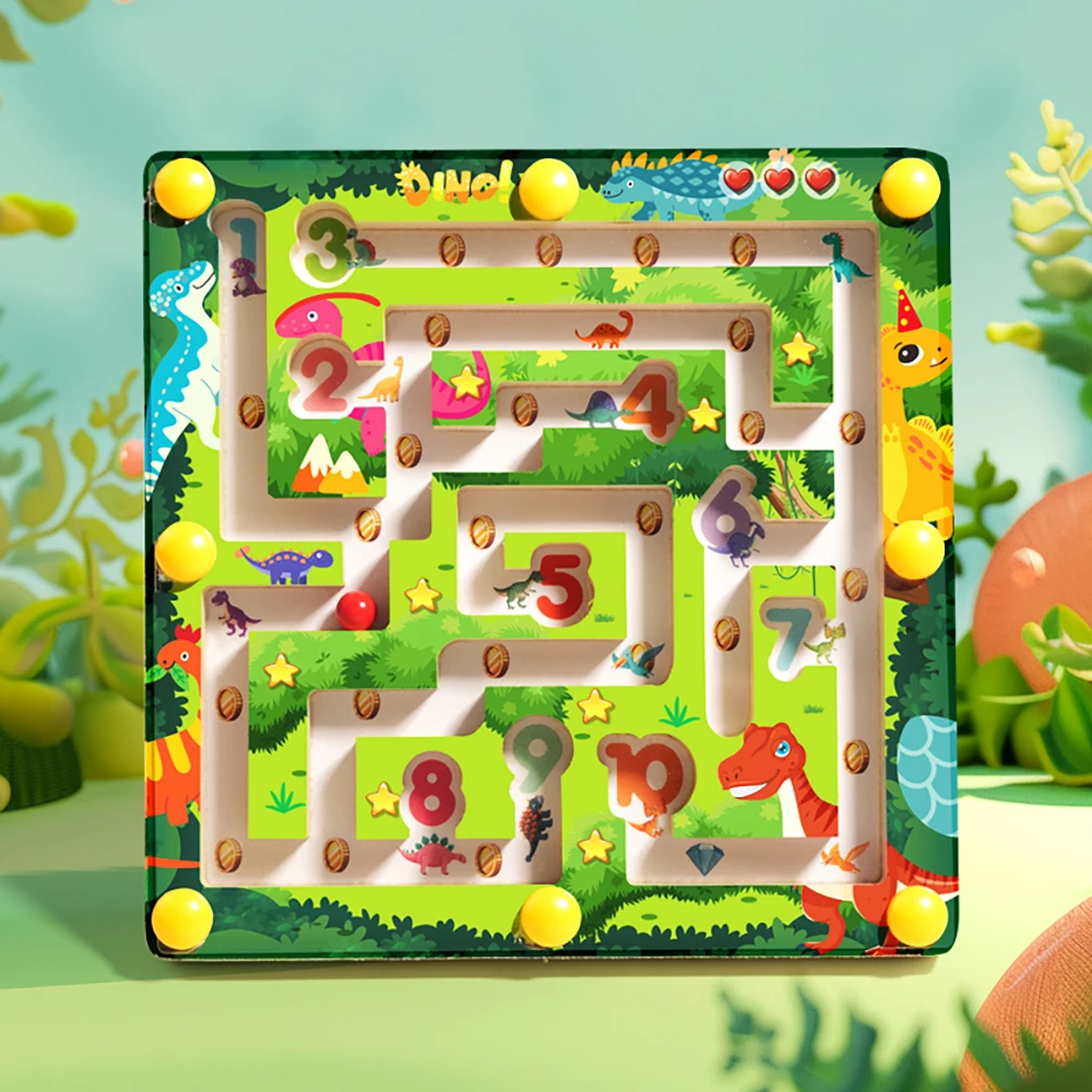 Le labyrinthe magnétique Montessori dinosaures est un jouet éducatif en bois conçu pour accompagner l’apprentissage des enfants dès 3 ans. Grâce à un parcours ludique illustré de dinosaures, ce jeu permet aux tout-petits de découvrir les chiffres de 1 à 10, les couleurs et le comptage, tout en développant leur motricité fine et leur concentration.